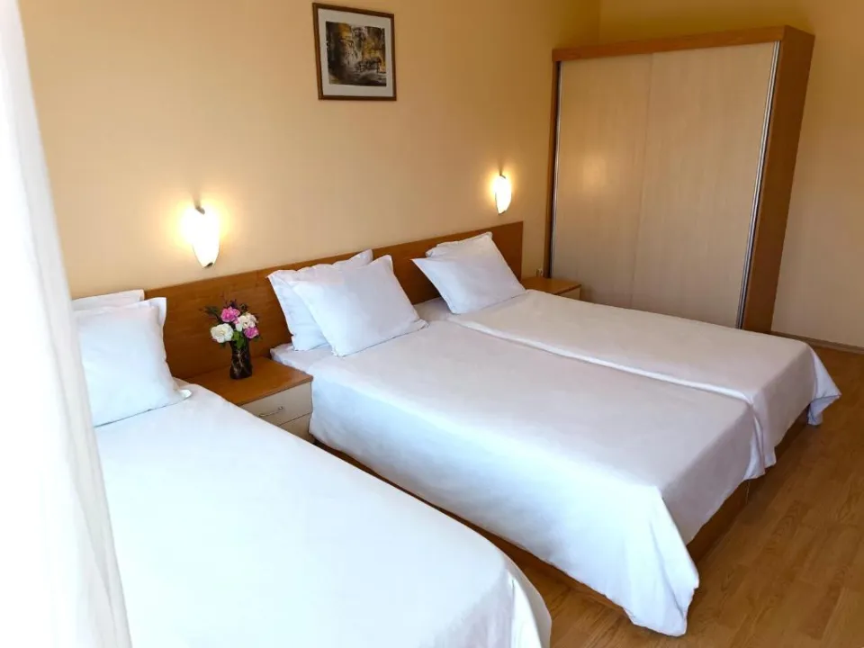 Sobe su opremljene klima uređajem i centralnim grejanjem. Neke sobe imaju balkon, koji gostima pruža dodatni prostor za odmor i opuštanje. Sve sobe su popločane i uključuju bračni krevet. Gosti mogu takođe rezervisati odvojene sobe. Kreveti za decu mogu se zatražiti za mlađe goste. Minibar je dostupan. Takođe je obezbeđena kuhinja sa frižiderom. Direktni telefonski poziv, televizor sa satelitskim/ kablovskim kanalima i WiFi osiguravaju optimalnu udobnost. Kupatila uključuju fen za kosu i opremljena su tušem i kadom.