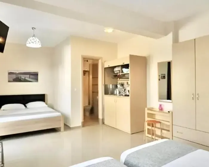 Greek Pride Panthea Studios je porodični smeštaj koji se nalazi u Skala Furki, Kasandra, Halkidiki, Grčka. Studiji se nalaze na samo 40metara od plaže Fourka, omogućavajući lak pristup moru. Kompleks nudi trokrevetne i porodične studije, od kojih je svaki opremljen klima uređajem, čajnom kuhinjom sa priborom i bežičnim internetom. Svaki studio ima sopstveno kupatilo sa kadom ili tušem, besplatnim toaletnim priborom i fenom za kosu.