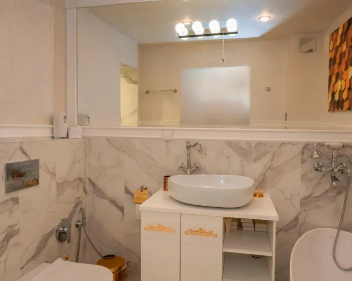Prostran stan opremljen je sa 1 spavaćom sobom, 1 kupatilom, posteljinom, peškirima, flat-screen TV-om sa satelitskim kanalima, trpezarijom, potpuno opremljenom kuhinjom i terasom sa pogledom na grad. Klimatizovana jedinica u objektu ima tuš sa ravnim ulazom i garderober. Ovaj apartman je bez alergena i za nepušače.