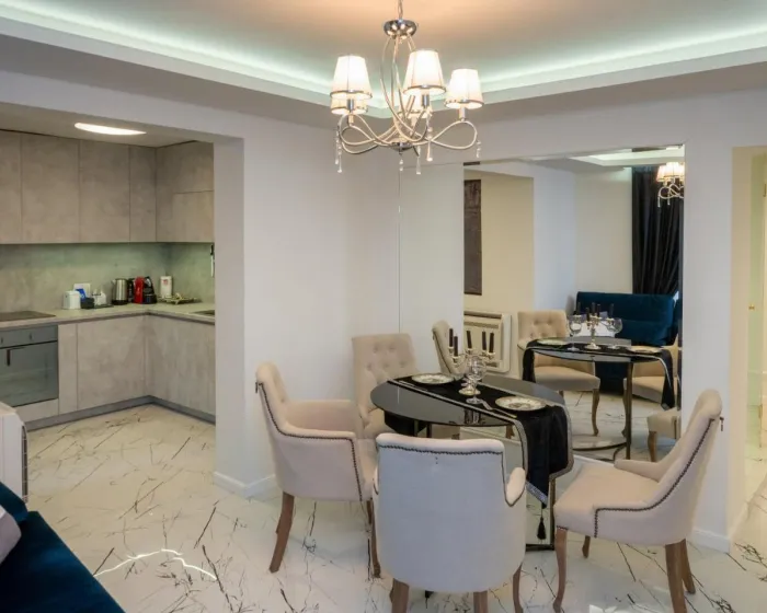 Apartman ima 1 spavaću sobu, 1 kupatilo, posteljinu, peškire, flat-screen TV s satelitskim kanalima, trpezariju, potpuno opremljenu kuhinju i balkon s pogledom na grad. Za dodatnu privatnost, smeštaj ima privatni ulaz i obezbeđen je celodnevnim obezbeđenjem.
