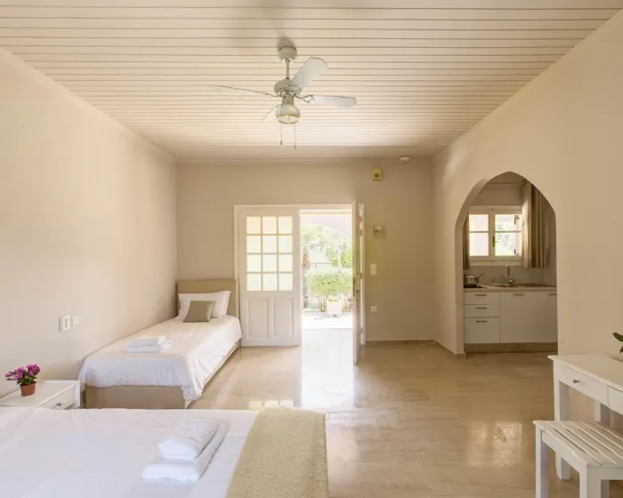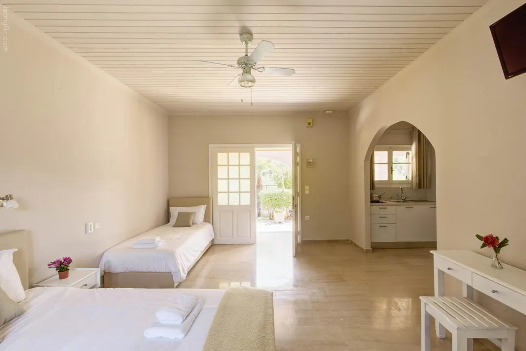 Sobe su opremljene klima uređajem, podesivim centralnim grejanjem i ventilatorom kako bi se obezbedila prijatna temperatura. Gosti mogu uživati u pogledu na baštu sa balkona ili terase. Sobe imaju bračni ili king-size krevet. Na raspolaganju su sef i radni sto. Standardni deo opreme uključuje čajnu kuhinju sa frižiderom i aparatom za čaj/kafu. Telefon, televizor, radio i besplatan WiFi obezbeđuju gostima mogućnosti za povezivanje i zabavu. Kupatila su opremljena tušem i kadom. Kompleks nudi porodične i sobe za nepušače.