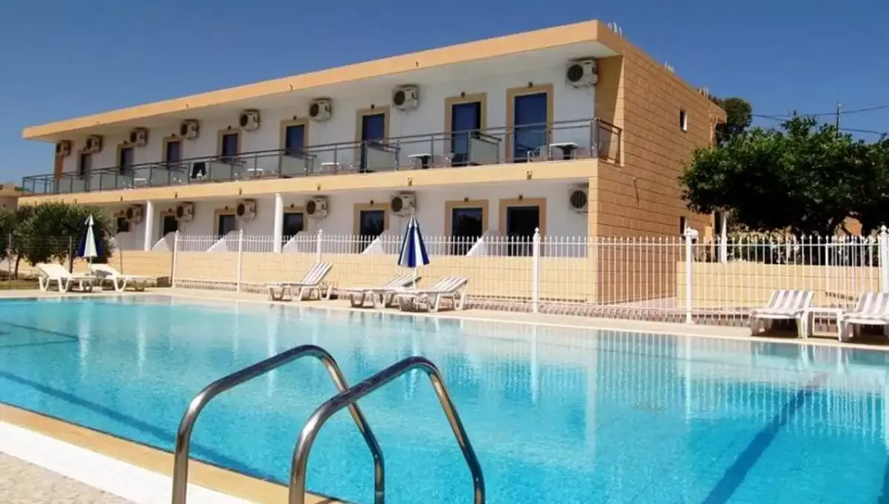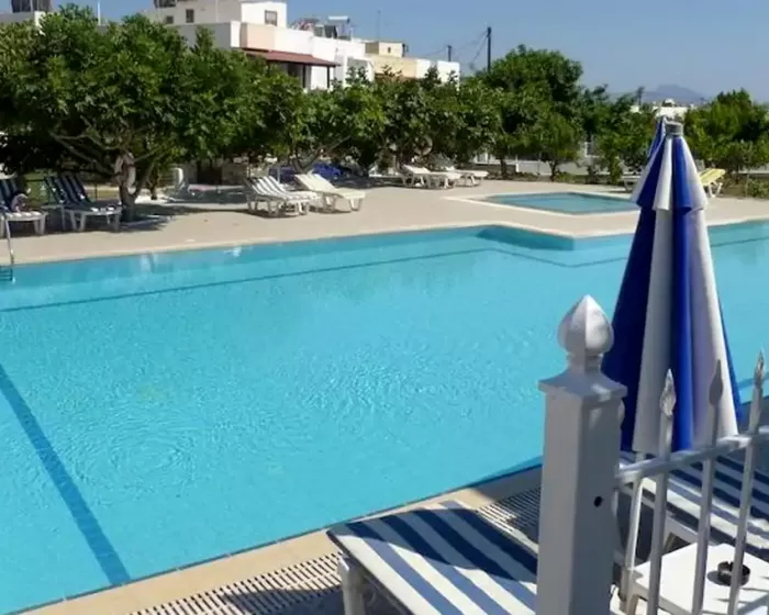 recepcija, bazen, ležaljke i suncobrani pored bazena, parking