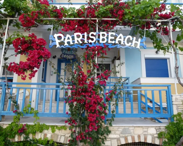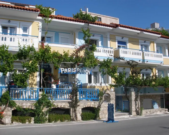 Smesten u primorskom selu Iraion, na samo 30 metara od plaže, Paris Hotel nudi klimatizovane sobe sa nameštenim balkonom koji gleda na