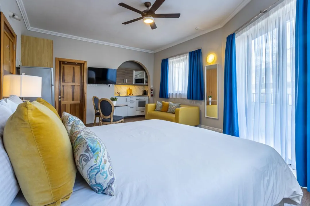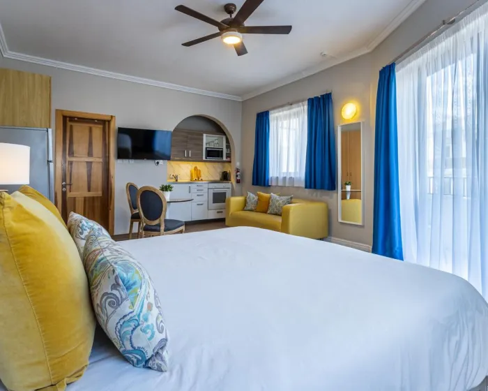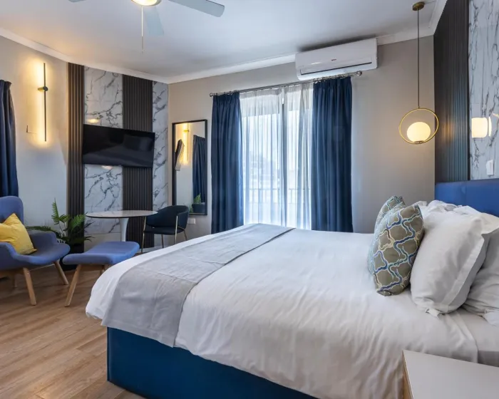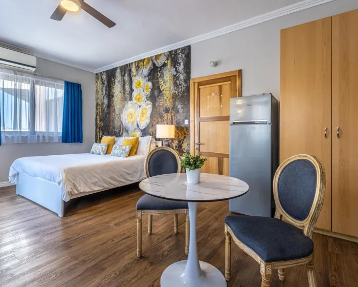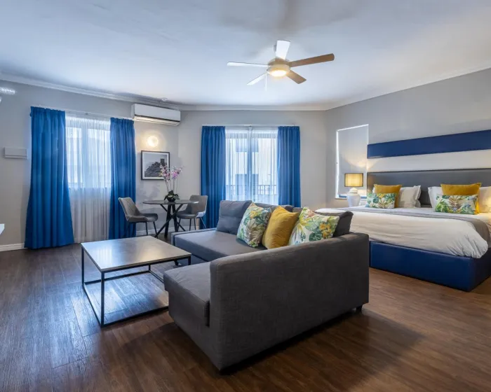 Sobe imaju klima uređaj i centralno grejanje. Većina soba ima balkon ili terasu. Sobe nude bračni krevet ili sofu na razvlačenje. Po potrebi se mogu obezbediti dečiji kreveti. Sef, minibar i radni sto su takođe dostupni. Kuhinjski deo opremljen je frižiderom, mikrotalasnom pećnicom i aparatom za kafu/čaj. Dostupan je i set za peglanje. Ostale pogodnosti uključuju telefon, satelitsku TV i WiFi. Kupatila imaju tuš kabinu, fen za kosu i kozmetičke proizvode. Dostupne su sobe prilagođene osobama sa invaliditetom.