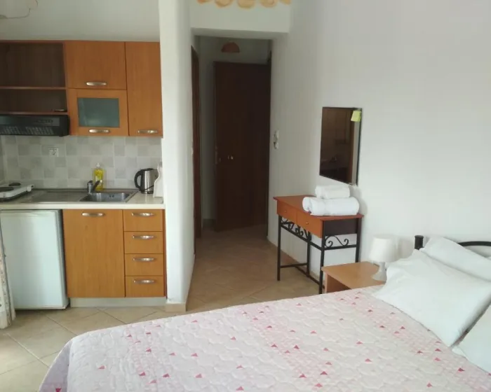 Ovaj smeštaj na obali nudi sobe sa klima uređajem, privatnim kupatilom i pristupom balkonu. Gosti mogu uživati u pogledu na more, sunčanoj terasi i besplatnom WiFi internetu u celom objektu. Jedinice imaju podove od keramike i potpuno opremljenu kuhinju sa frižiderom, trpezarijskim delom, ravnim TV-om sa kablovskim kanalima i privatnim kupatilom sa tušem i fenom za kosu. Takođe su dostupni ploča za kuvanje, kuhinjski pribor, aparat za kafu i ketler. Posteljina i peškiri su obezbeđeni za sve jedinice.