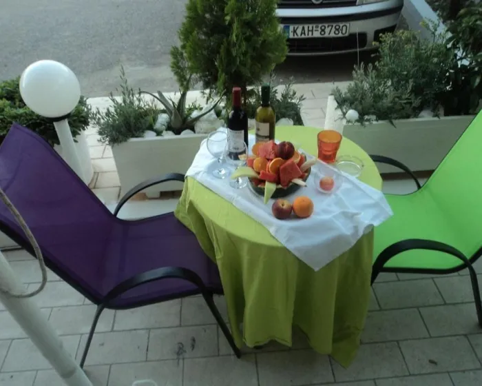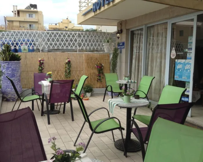 Hotel se nalazi na odličnoj lokaciji vrlo blizu centra, luke i aerodroma. Nalazi se u malom porodičnom naselju daleko od velike buke grada, koji je udaljen oko 1 km i nudi mnogo prodavnica. Akvarijum na Kritu je udaljen oko 12 km. Aerodrom Nikos Kazantzakis udaljen je oko 2 km.