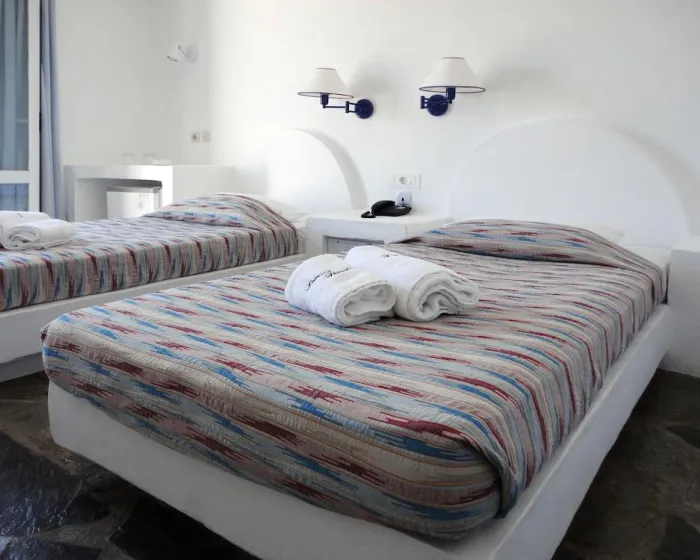 Klima uređaj i centralno grejanje obezbeđuju da sobe održavaju udobnu temperaturu. U većini jedinica, gosti mogu uživati u pogledu na more sa balkona ili terase. Sobe imaju bračni krevet ili krevet queen size. Takodje su dostupni sef, minibar i radni sto. Gosti će pronaći i frižider među standardnim sadržajima. Direktni telefonski poziv, televizor sa satelitskim/kablovskim kanalima, radio i WiFi (bez dodatne naknade) pružaju sve što je potrebno za udoban odmor. Kupatila su opremljena tušem i fenom za kosu. Porodične sobe su dostupne za roditelje sa decom.