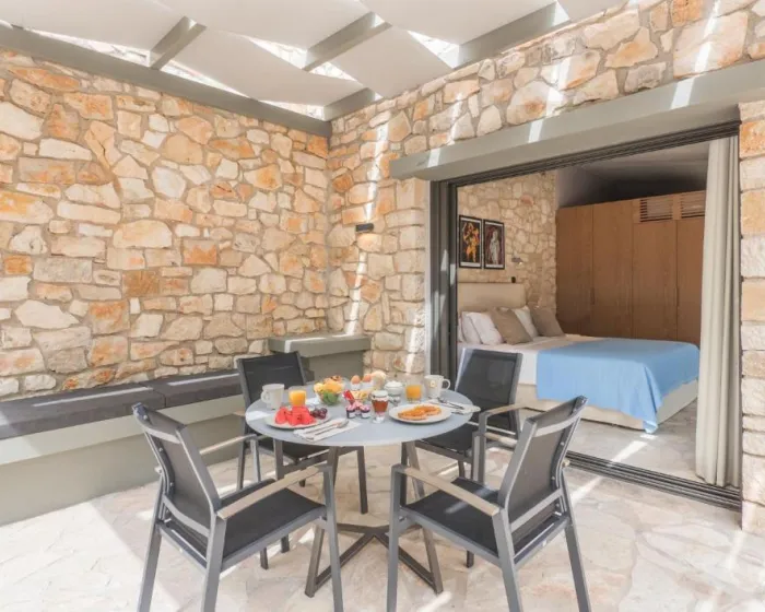 Hotel Paxoi Resort Gaios Paxos se nalazi na oko 550 metara udaljenosti od glavnog šetališta i centra grada Gaiosa. Popularna Avlaki plaža udaljena je oko 2 kilometara od samog smeštaja. Okolina hotela je vrlo mirna i okružena zelenilom.