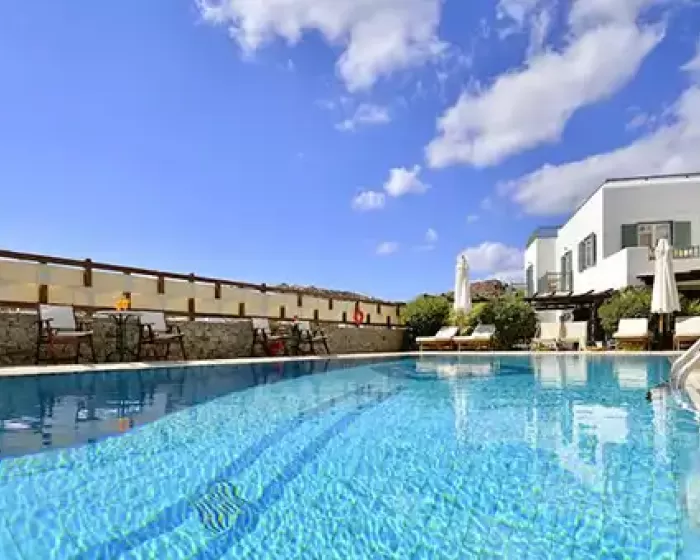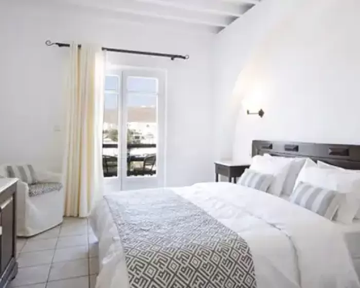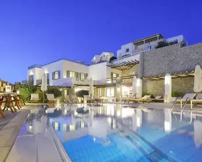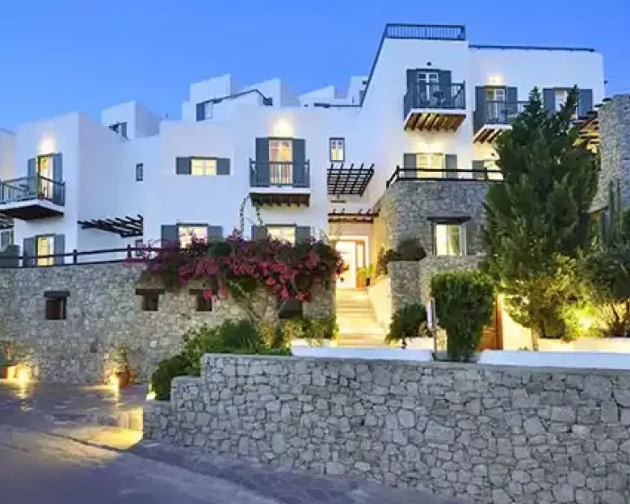 Pelican Bay Art Hotel Mikonos se nalazi na ostrvu Mikonos, samo 300 metara udaljen od plaže i oko 4 km od grada Mikonosa, do kog se lako može doći lokalnim autobusom koji polazi sa stanice udaljene samo 300 metara. Aerodrom ostrva udaljen je samo 20-minutnom vožnjom autobusom.