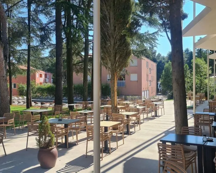 Prijatno zagrejana voda na otvorenom bazenu garantuje udobno plivanje. Kratka pauza ili čitavo popodne na sunčanoj terasi, koja ima ležaljke i suncobrane, je vreme provedeno na pravom mestu. Postoji mnogo načina za opuštanje ili aktivnost u hotelu, uključujući vožnju bicikla/brdski bicikl, tenis, odbojku, stoni tenis, badminton i spa. Roditelji mogu da se opuste dok deca mogu da učestvuju u programu zabave punom zabavnih aktivnosti.