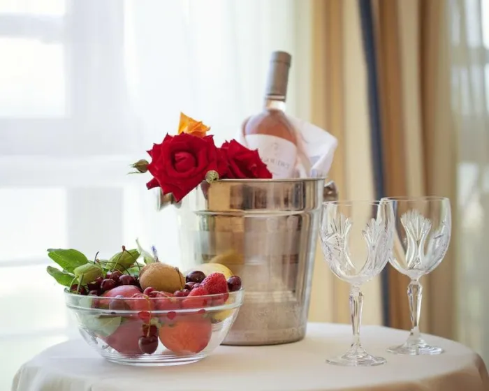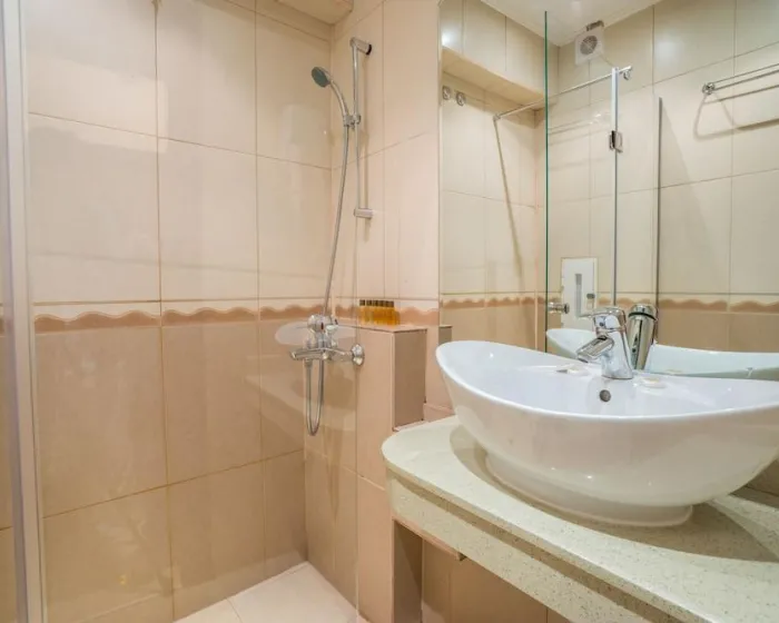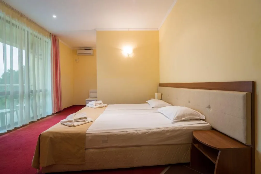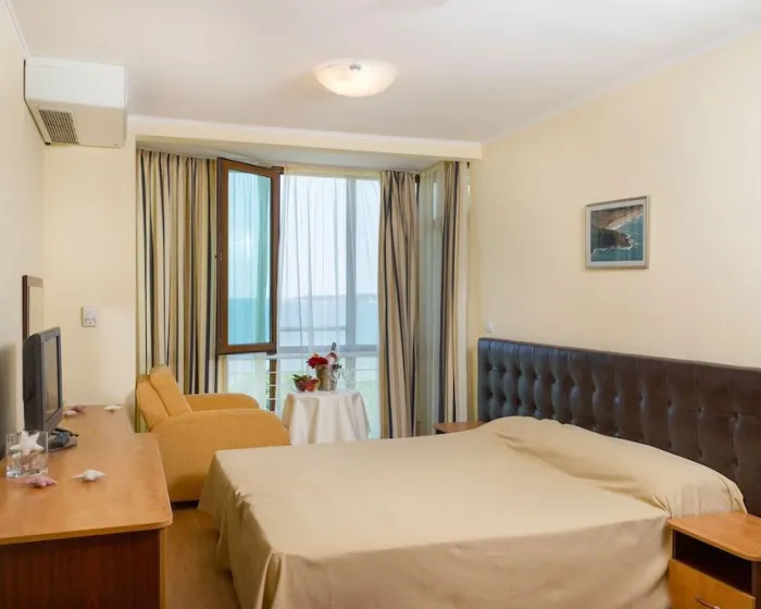 Klima uređaj i centralno grejanje obezbeđuju da sobe održavaju udobne temperature. Gosti mogu uživati u pogledu na more sa balkona ili terase. Sve sobe su popločane i uključuju bračni krevet i kauč na razvlačenje. Dostupne su odvojene spavaće sobe. Krevetić za decu i dodatni kreveti mogu se zatražiti za mlađe goste. Sef, minibar i radni sto su takođe dostupni. Set za peglanje je obezbeđen radi praktičnosti gostiju. Takođe su obezbeđeni telefon, TV i WiFi (bez dodatne naplate). Kupatila su opremljena tušem i kadom, kao i fenom za kosu. Kozmetički proizvodi i izbor peškira pružaju dodatnu udobnost u kupatilima. Hotel ima porodične sobe i sobe za nepušače.