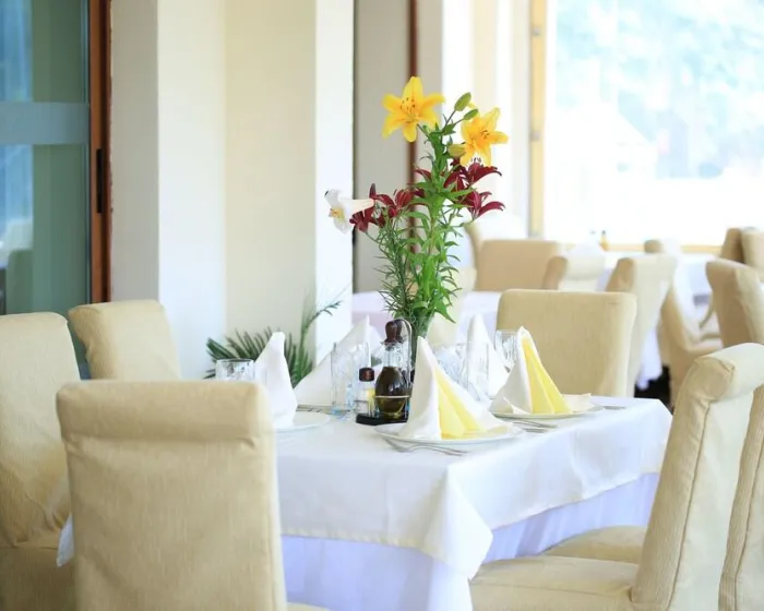 Deo za ručavanje uključuje restoran i bar. Opcije ishrane uključuju polupansion i sve uključeno. Svi uključeni turisti uživaju u posebnim dodacima poput užina, kao i u izboru alkoholnih i bezalkoholnih pića. Doručak, ručak i večera su dostupni.