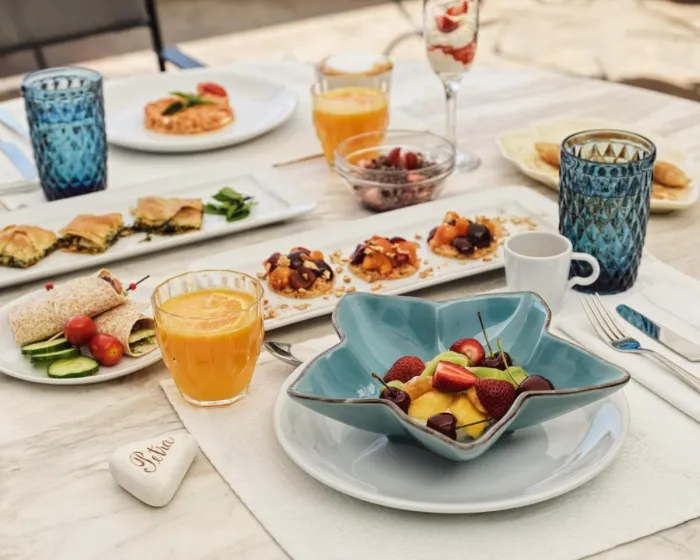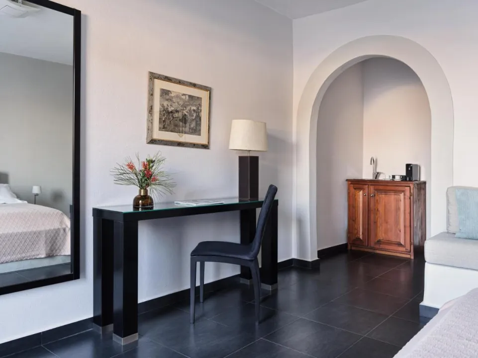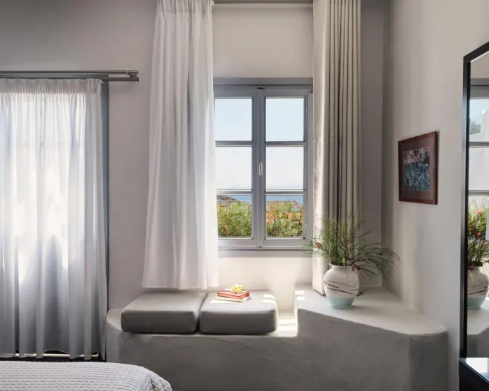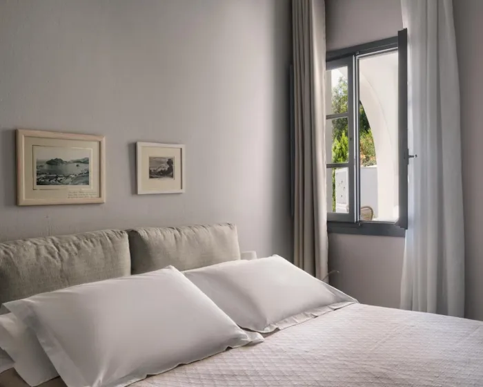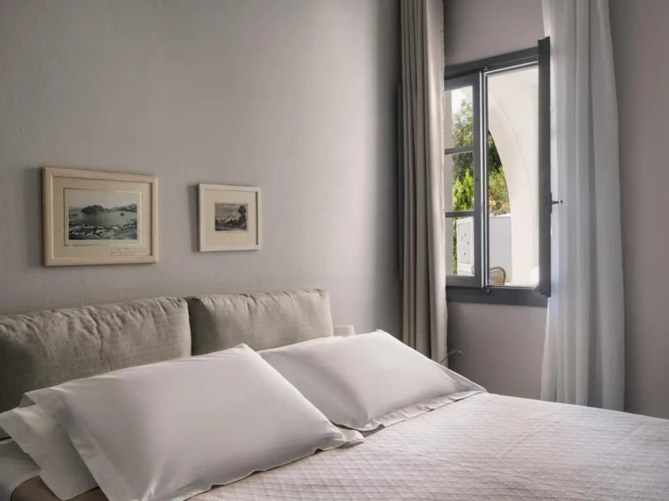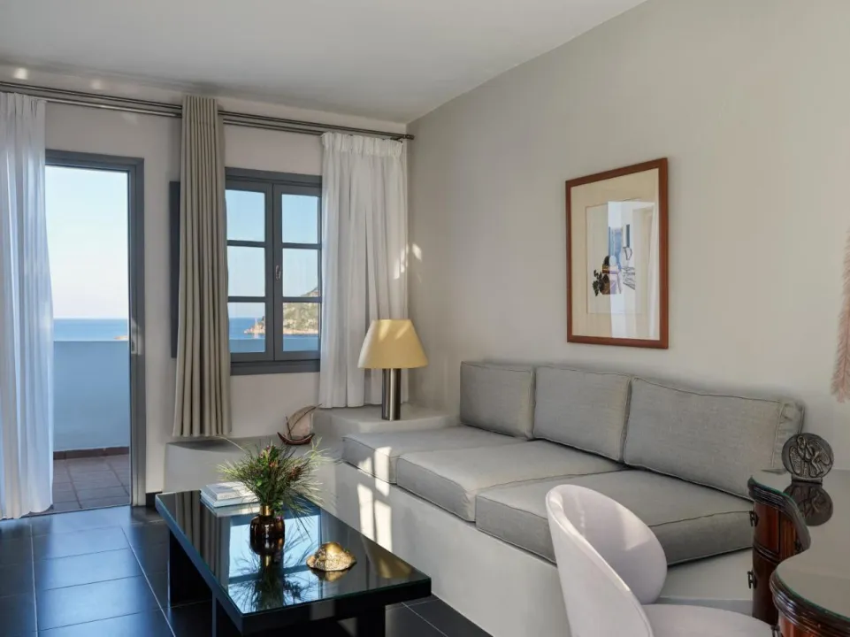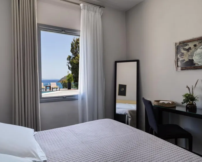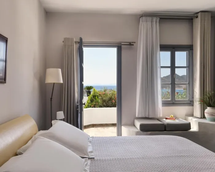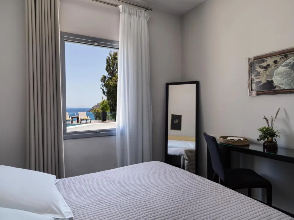 Klima uređaj i individualno podešavanje grejanja obezbeđuju udobne temperature u sobama. Gosti mogu uživati u pogledu na more sa balkona ili terase. Sobe imaju bračni krevet i sofu na razvlačenje. Dodatni kreveti mogu biti zatraženi. Na raspolaganju su sef i mini bar. Dodatni sadržaji uključuju frižider i mini frižider. Direktni telefonski poziv, televizor s satelitskim/kablovskim kanalima, stereo sistem i WiFi (bez dodatne naplate) obezbeđuju sve što je potrebno za udoban odmor. Kupatila su opremljena tušem i kadom, kao i fenom za kosu. Hotel ima porodične sobe i 12 soba za nepušače.