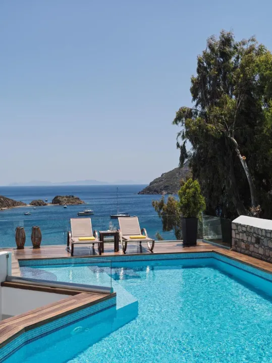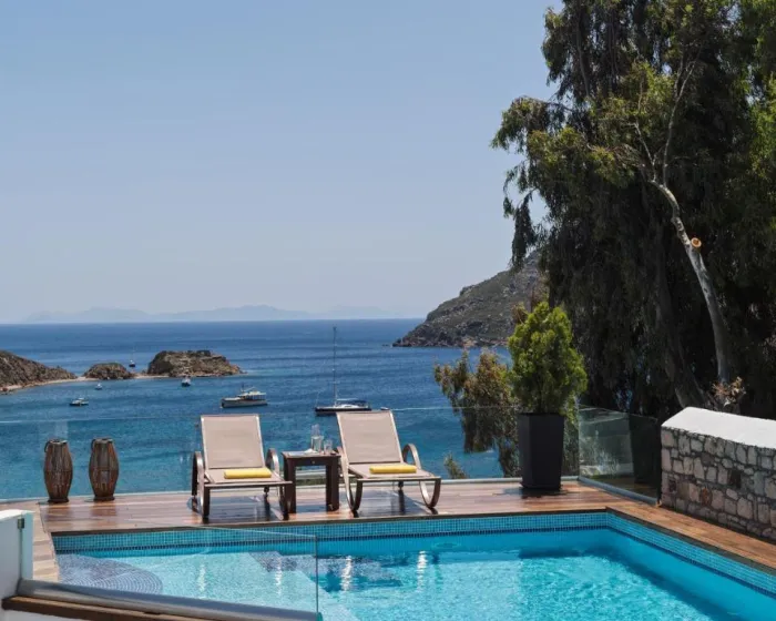 Ovaj hotel se nalazi u naselju Grikos, slikovitom i mirnom ribarskom selu na ostrvu Patmos (samo 13 kilometara dugačkom). Nalazi se samo 70 metara od plaže Grikos, 150 metara od najbližih restorana i 300 metara od veza sa javnim prevozom. Udaljen je samo 5 minuta vožnje automobilom od luke Skala, turističkog centra i barova, a takođe je udaljen samo 5 minuta vožnje od grada Patmos (Hora), glavnog grada ostrva. Prodavnice su udaljene 4,5 kilometara, a do Kambosa ima 8 kilometara.