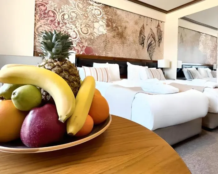 Junior apartmani za 2-4 osobe (2+2): apartmani su komforni (oko 44 m2) i sadrže francuski ili dva odvojena ležaja, sofu na rasklapanje, SAT TV, sef, internet, kupatilo sa tušem, fenom za kosu, bade matil i papuče. Većina apartmana je sa balkonom. Namenjen smeštaju porodica sa dvoje dece, a maksimalno 3 odrasle osobe i jednog deteta.