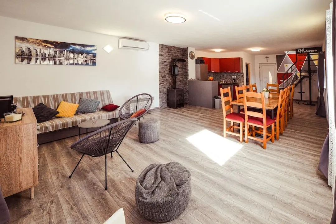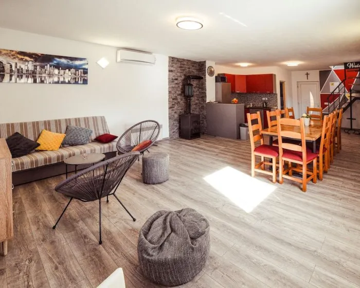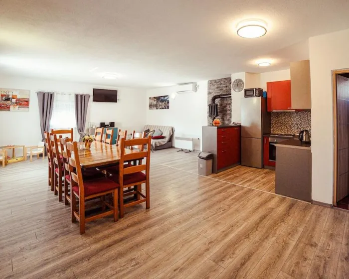 Tekst se prevodi na srpski jezik, ekavica. Uklanja se kompletno formatiranje. Nema naslova, bolda, podnaslova, HTML oznaka, zvezdica, crtica i slično. Tekst mora biti čist i copy-paste friendly. Reč “internet centar” zamenjuje se sa “internet centar”. Svako pominjanje “faks mašina” ili sličnih varijacija menja se u “internet centar”. Reč “grejanje” prevodi se kao “klima uređaj”. Ne koriste se skraćenice za metar i kilometar, već se piše punim rečima: metara, kilometara. Potpuno se brišu, ne prevode se, rečenice koje se odnose na dodatne troškove po osobi, obaveznu ličnu kartu i depozit ili karticu pri prijavi, posebne zahteve uz doplatu i bez garancije, prihvatanje isključivo gotovine, informacije koje su automatski prevedene od strane objekta, detaljna uputstva za kontakt i prijavu 48 sati pre dolaska, kao i dolazak nakon 20:00 sa posebnim instrukcijama. Brišu se sve rečenice o plaćanju karticama, načinima plaćanja i sličnim napomenama o plaćanju. Brišu se sve copyright rečenice i njihove varijacije, na primer GIATA i slično: Lokacija Kada boravite u ovoj kući za odmor u Velikoj Gorici, bićete na 15 minuta vožnje od Parka Prirode Papuk. Ova kuća za odmor udaljena je 10,5 mi (16,8 km) od Starog grada Lukavca i 14 mi (22,5 km) od Supernova Zagreb - Buzin. Sobe Osećajte se kao kod kuće u ovoj kući za odmor sa klima uređajem, koja ima privatni bazen i flat-screen TV. Tu je i privatni balkon. Kuhinja je opremljena frižiderom, rernom i šporetom. Sadržaji Iskoristite priliku za rekreaciju uključujući saunu i sezonski spoljni bazen. Poslovni, Ostali sadržaji Besplatno parkiranje je dostupno na licu mesta. Pre dolaska Saznajte: Check In: 16:00 - ponoć Check Out: 10:00 AM Dodatne troškove po osobi mogu se naplatiti i varirati u zavisnosti od propisa objekta. Za incidentne troškove može biti potrebna lična identifikaciona kartica izdata od strane vlade i kreditna kartica, debitna kartica ili gotovinski depozit prilikom prijave. Posebni zahtevi su podložni dostupnosti prilikom prijave i mogu povući dodatne troškove; posebni zahtevi ne mogu biti garantovani. Ovaj objekat prihvata kreditne/debitne kartice; gotovina nije prihvaćena. Zajednica za starije osobe Domaćin nije naznačio da li postoji detektor ugljen monoksida na objektu; razmotrite mogućnost da ponesete prenosivi detektor sa sobom na putovanje. Domaćin nije naznačio da li postoji detektor dima na objektu. Ovaj objekat ima spoljne prostore, poput balkona, terasa, terasa, koji možda nisu pogodni za decu; ako imate brige, preporučujemo da pre dolaska kontaktirate objekat da potvrdite da vas mogu smestiti u odgovarajuću sobu. Nema radnog stola na ovom objektu. Da biste dogovorili prijavu, obratite se objektu najmanje 24 sata pre dolaska koristeći informacije na potvrdi o rezervaciji. Gosti će dobiti e-mail najkasnije 7 dana pre dolaska sa instrukcijama za prijavu i informacijama o preuzimanju ključeva. Gosti mogu pristupiti smeštaju kroz privatni ulaz. Informacije koje je obezbedio objekat mogu biti prevedene korišćenjem automatskih alata za prevod.