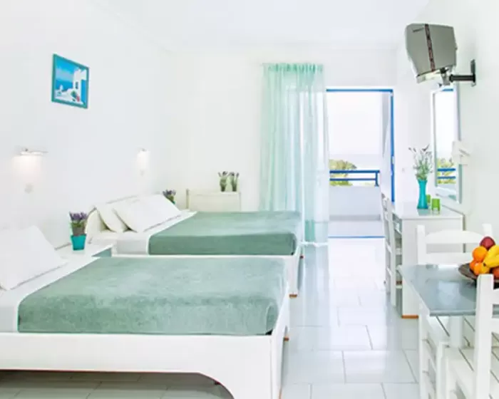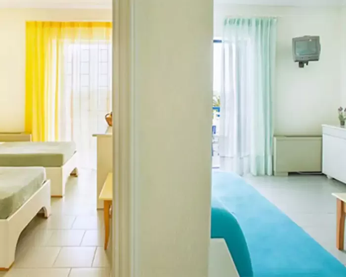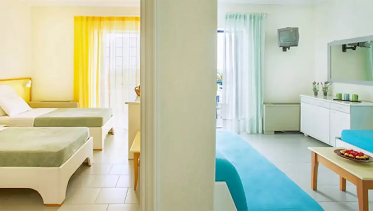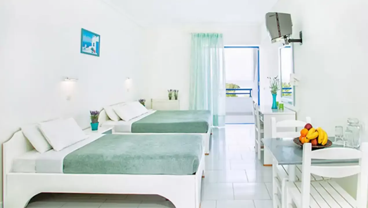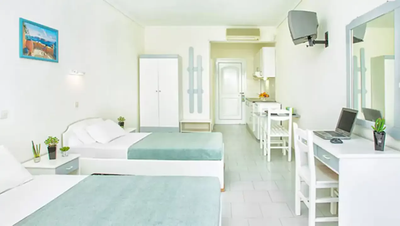 Klima uređaj i centralno grejanje obezbeđuju prijatnu temperaturu u sobama. U većini jedinica gosti mogu uživati u pogledu na more sa balkona ili terase. Sobe imaju bračni krevet i sofu na razvlačenje, a dostupne su i odvojene spavaće sobe. Dečji kreveti dostupni su na zahtev. Na raspolaganju su sef i radni sto. Čajna kuhinja sadrži frižider i mini frižider. Telefon, TV i besplatan WiFi obezbeđuju dodatnu udobnost. Kupatila su opremljena tušem i kadom, a gostima su dostupni fen za kosu, kozmetički proizvodi i peškiri. Hotel nudi porodične i sobe za nepušače.