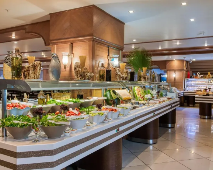 Različite opcije ishrane su dostupne, uključujući 3 restorana, bar i lobi bar. Osvežavajuća pića u baru na plaži su savršen način da uživate u toplom vremenu. Sveukupno je u ponudi usluga sveuključeno. Omogućena je doručak za rane ptice i one koji kasne, ručak i večera mame goste širokim spektrom jela. Hotel takođe nudi užine. Za goste, alkoholna i bezalkoholna pića su uključena.