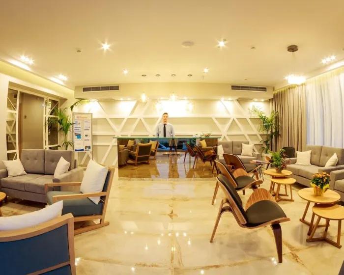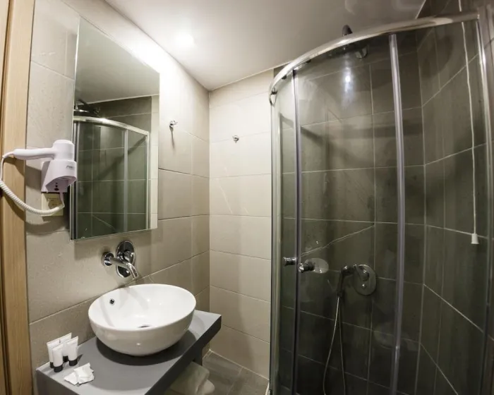 Air conditioning and central heating ensure that rooms maintain comfortable temperatures. A balcony is among the standard amenities of some rooms. The rooms have a double bed and a sofa bed. Children's beds can be requested for younger guests. Valuables can be securely stored in a safe. Additional features include a refrigerator and a tea/coffee station. Internet access, a telephone and satellite television provide all the essentials for a comfortable holiday. Bathrooms are equipped with a shower and a hairdryer. Guests can also book wheelchair-friendly rooms with wheelchair-accessible bathrooms. Family rooms are available for parents with children.