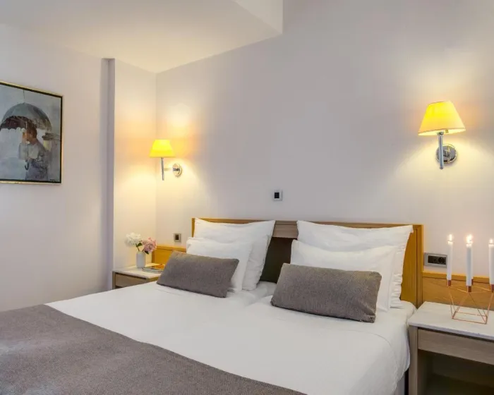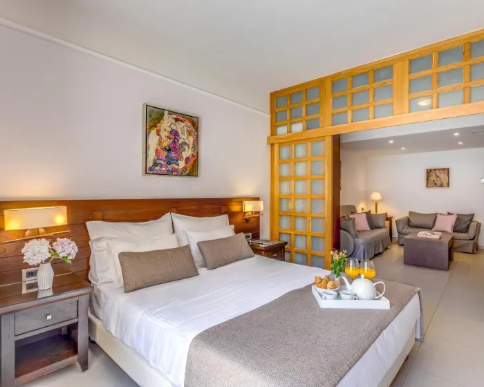 Sobe su opremljene klima uređajem i individulano podesivim grejanjem. Većina jedinica uključuje balkon sa pogledom na more, gde gosti mogu opuštati se. Sobe imaju bračni krevet, francuski ležaj ili krevet king size. Kreveti za decu i dodatni kreveti mogu se zatražiti za mlade goste. Na raspolaganju su i sef i minibar. Takođe su dostupni i direktni telefonski poziv, televizor sa satelitskim/ kablovskim kanalima, radio i WiFi (bez dodatne naplate). Kupatila su opremljena tušem i kadom, kao i fenom za kosu. Mogu se rezervisati sobe prilagođene kolica. Porodične sobe su dostupne za roditelje sa decom.