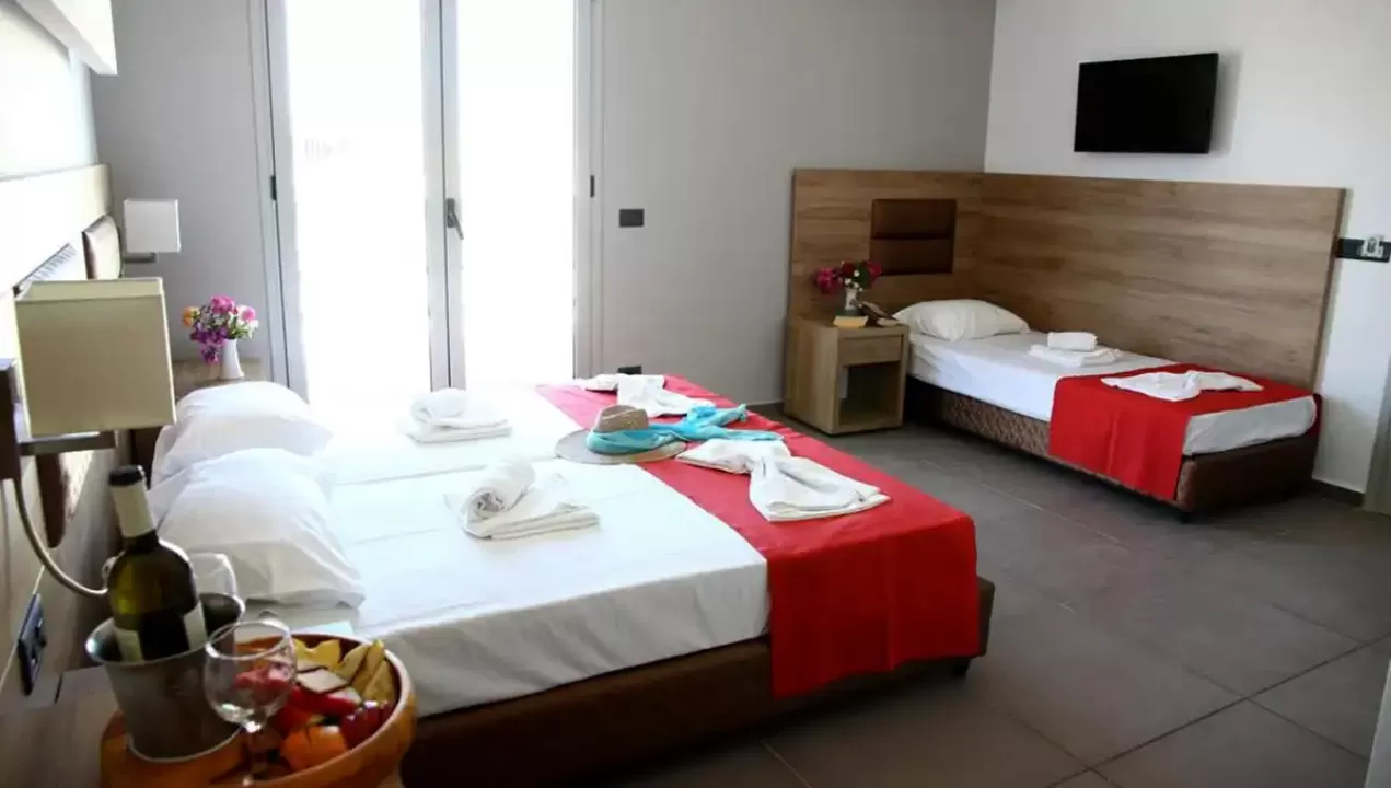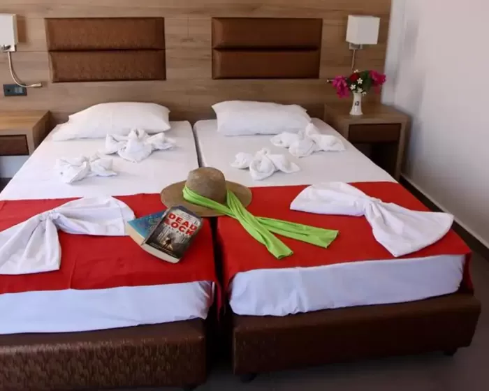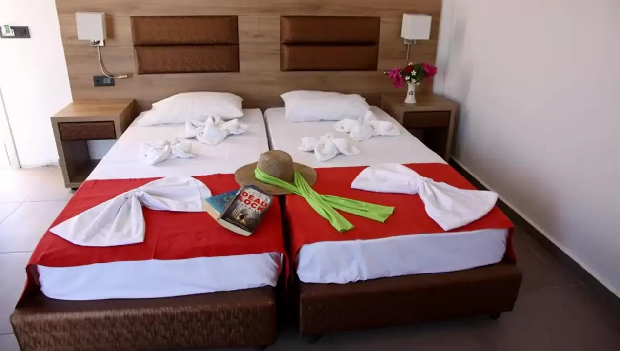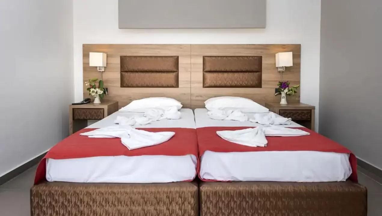 Ukupno 95 soba: Singles (~17 m²), Doubles Standard (~18 m²), Doubles Economy (~17 m²), Doubles Deluxe (~20 m²), Triples Deluxe (~22 m²), Triples Deluxe 4 pax (~22-24 m²). U sobama: klima, mini-frižider, SAT TV, Wi-Fi internet, tuš, fen (na zahtev), sef (uz doplatu na licu mesta), balkon/terasa