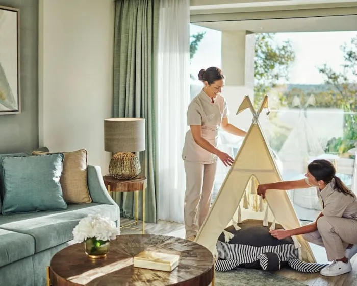 Klima uređaj (bez dodatne naknade) i centralno grejanje osiguravaju udobne temperature u sobama. Gosti odmarališta dobijaju poklon dobrodošlice po dolasku. Sobe sadrže bračni krevet. Tu je i sef i, uz doplatu, mini bar. Gosti će pronaći i stan za čaj/kafu među standardnim sadržajima. Opremljene sa flat-screen televizorom, konzolom za igre i WiFi (bez dodatne naknade), sobe pružaju mnogo načina za povezivanje i zabavu gostiju. Papuče su uključene. Kupatila su opremljena dečjom kadom. Fen, ogledalo za šminkanje, bade mantili i telefon su na raspolaganju u kupatilima za svakodnevnu upotrebu. Kao posebna pogodnost, kupatila su opremljena kozmetičkim proizvodima i izborom peškira. Odmaralište ima 148 soba za nepušače.