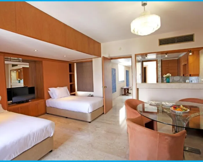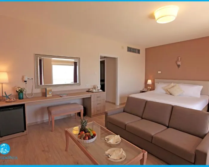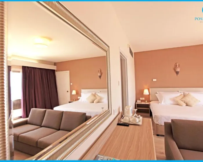 Klimatizacija i centralno grejanje osiguravaju da sobe održavaju ugodne temperature. Gosti se mogu opustiti i uživati u pogledu na more sa balkona ili privatne terase nekih soba. Sve sobe su pokrivene tepihom i imaju bračni krevet, bračni krevet, bračni krevet ili kauč na razvlačenje. Dodatni kreveti se mogu zatražiti. Sef obezbeđuje bezbedno skladištenje lične imovine gostiju. Dodatne karakteristike uključuju mini frižider i stanicu za čaj/kafu. Za udobnost gostiju obezbeđena je presa za pantalone. Takođe su obezbeđeni telefon sa direktnim biranjem, TV sa satelitskim/kablovskim kanalima, radio i ViFi (bez doplate). Kupatila su opremljena tušem i kadom, kao i fenom za kosu. Takođe se mogu rezervisati sobe za osobe u invalidskim kolicima. Porodične sobe su dostupne roditeljima sa decom.