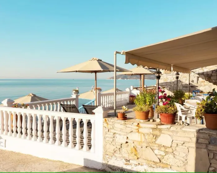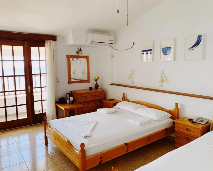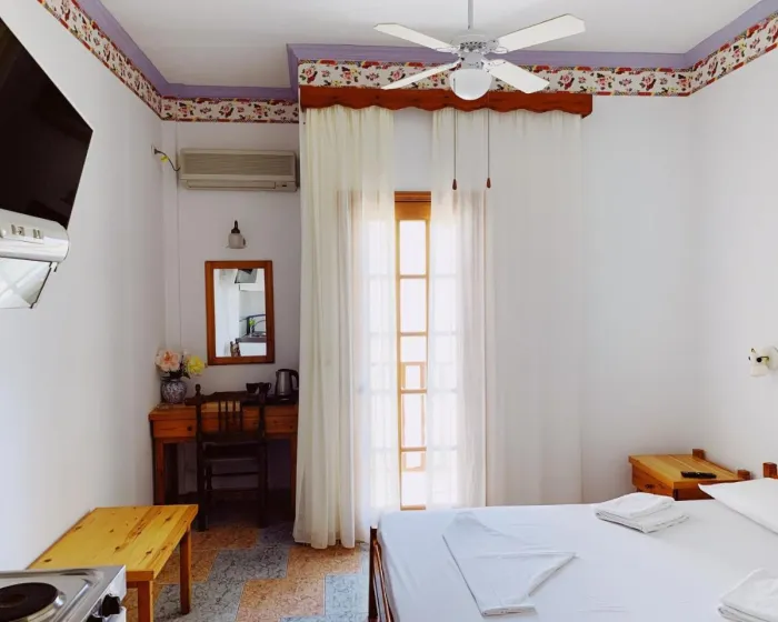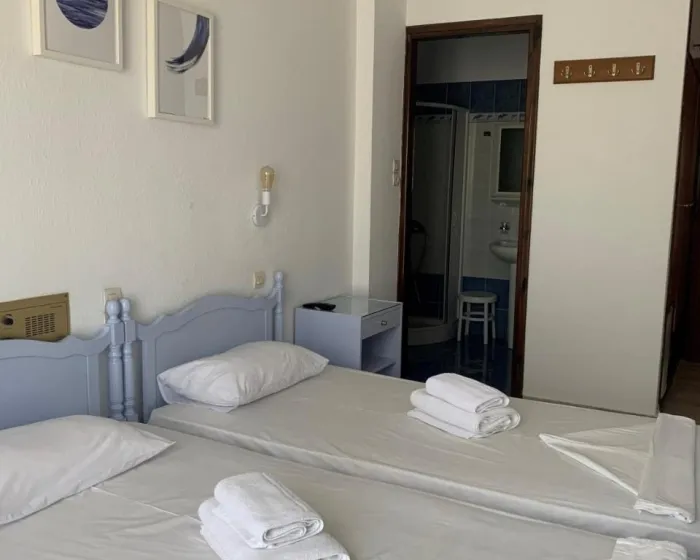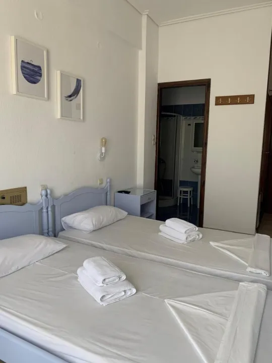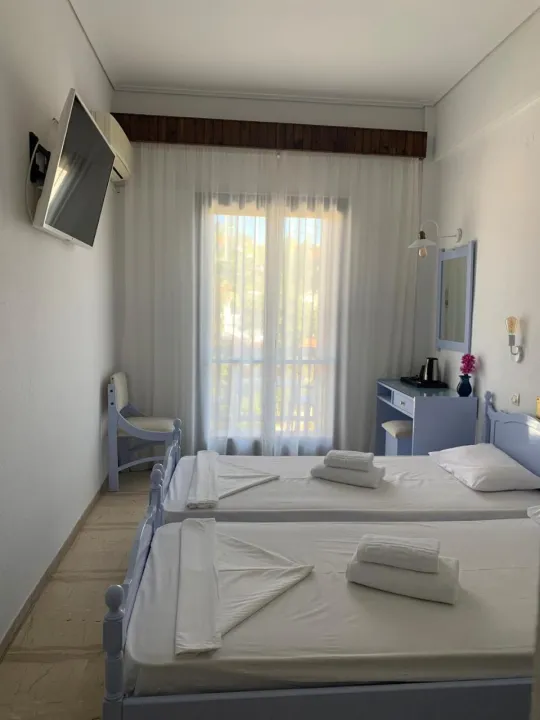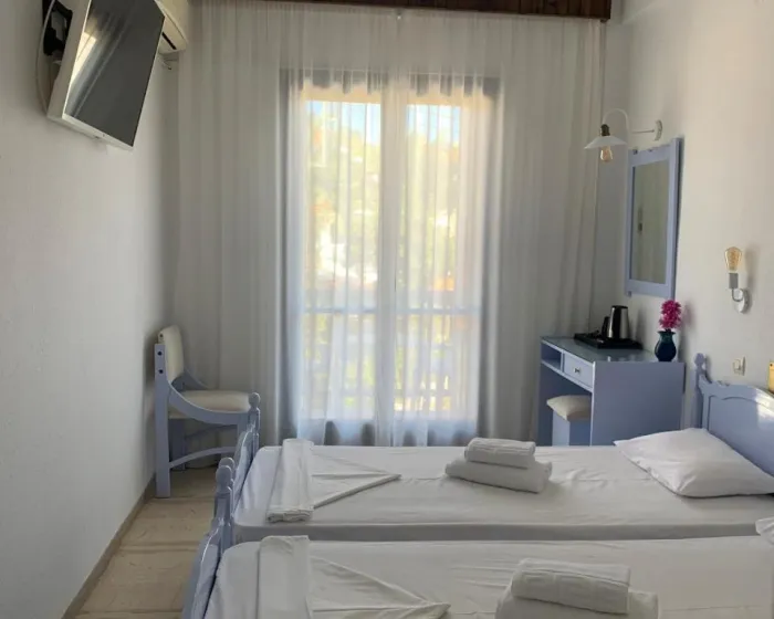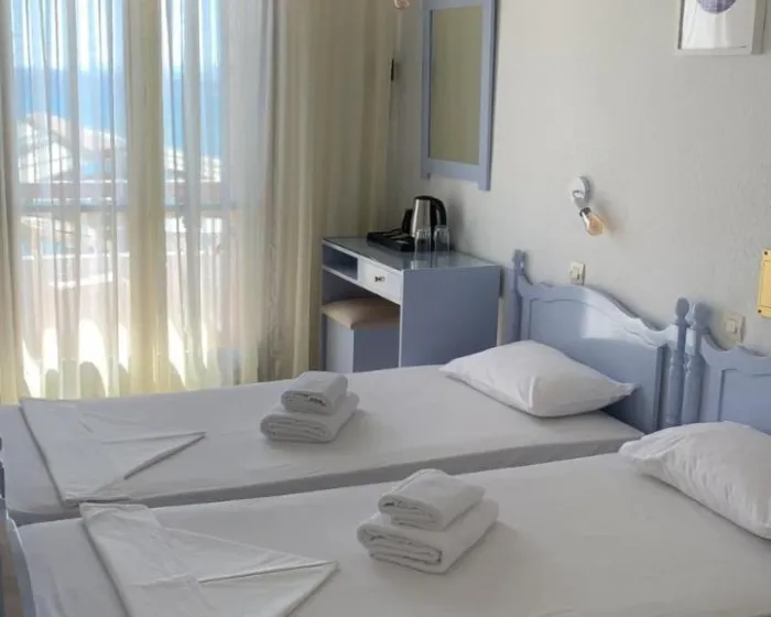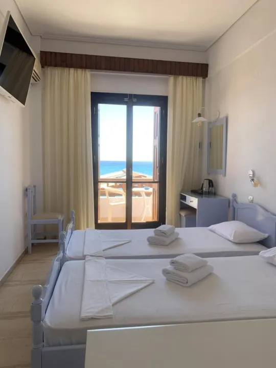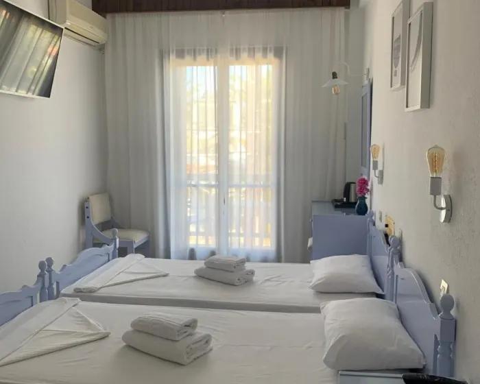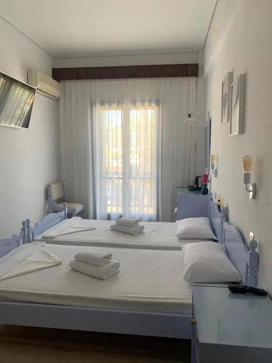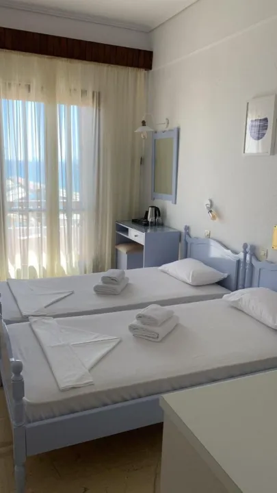 Smesten u primorskom selu Iraion, na samo 30 metara od plaže, Paris Hotel nudi klimatizovane sobe sa nameštenim balkonom koji gleda na