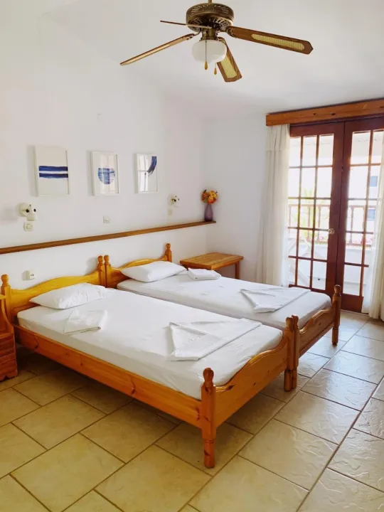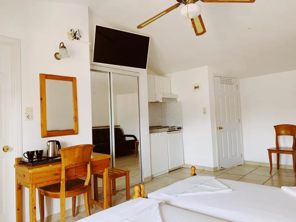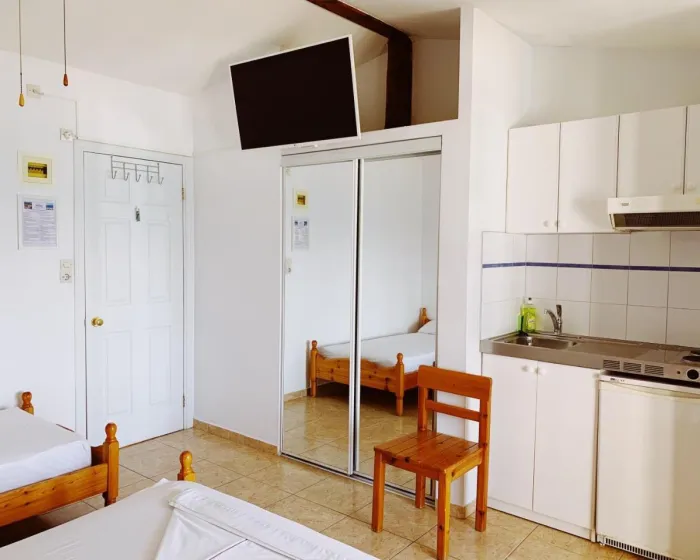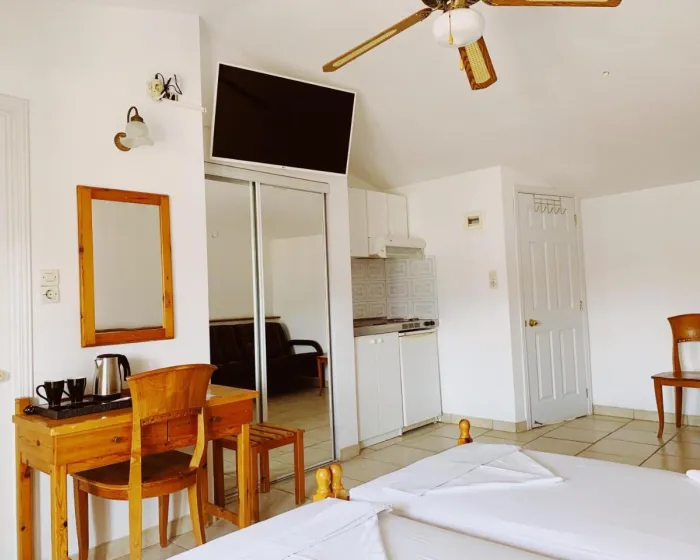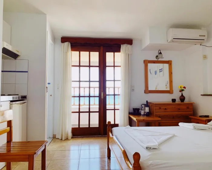 Sobe su opremljene klima uređajem. U većini jedinica, gosti mogu uživati u pogledu na more sa balkona ili terase. Sobe imaju bračni krevet i sofu na razvlačenje. Dodatni kreveti mogu biti zatraženi. Mini bar je obezbeđen. Sve kuhinje dolaze sa frižiderom, mini frižiderom i čajnom kuhinjom. Telefon, TV i WiFi obezbeđuju optimalnu udobnost. Papuče su uključene. Kupatila su opremljena tušem. Fen za kosu, bade mantili i telefon su dostupni za svakodnevnu upotrebu. Hotel ima porodične sobe i sobe za nepušače.