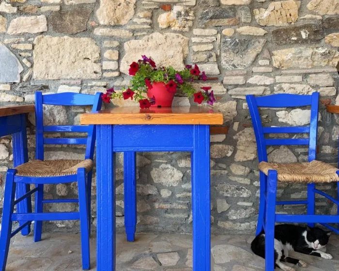 Polyxeni je hotel na obali mora, koji gleda na pristanište trajekta u istorijskom selu Pitagorion.