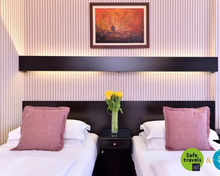 Sobe su opremljene klima uređajem i centralnim grejanjem. Balkon je među standardnim sadržajima nekih soba. Sve sobe su postavljene tepihom i uključuju bračni krevet, krevet queen size ili king size krevet. Dodatni kreveti se mogu zatražiti. Sef, minibar i radni sto su takođe dostupni. Gosti će takođe pronaći stan za čaj/kafu uključen među standardnim sadržajima. Takođe postoji set za peglanje i preša za pantalone. Direktni telefonski poziv, televizor sa satelitskim/kablovskim kanalima, radio, stereo uređaj, DVD plejer, alarmni sat i WiFi su takođe obezbeđeni. Usluga uključivanja posteljine nudi gostima dodatnu udobnost. Papuče su uključene. Kupatila su opremljena tušem i kadom. Fen za kosu, bade mantil i telefon su dostupni za svakodnevnu upotrebu. Za dodatnu udobnost u kupatilima, gostima se nude kozmetički proizvodi. Hotel ima sobe za nepušače.