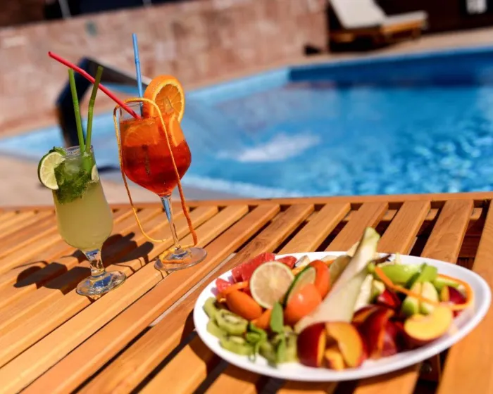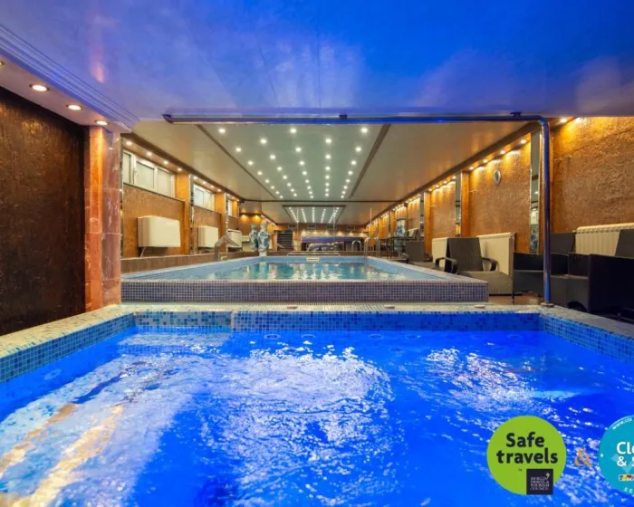 Prijatno zagrejana voda u zatvorenim i otvorenim bazenima garantuje udobno plivanje. Osvežavajuća pića u baru pored bazena i opuštajuće kupanje u đakuziju pružaju savršen način za opuštanje. Kratki predah ili ceo popodne na sunčanoj terasi, koja ima ležaljke i suncobrane, vreme je dobro iskorišteno. Sportske i zabavne sadržaje u hotelu uključuju teretanu, kalisteni...