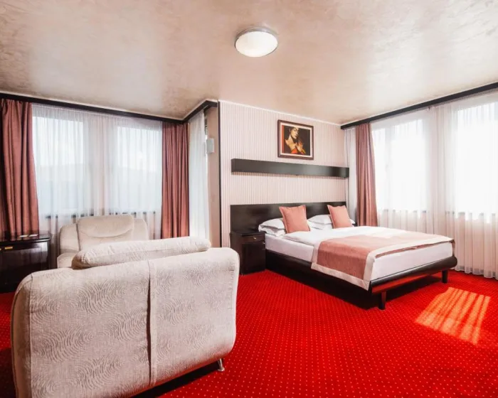 Hotel je jedan od retkih hotela sa pet zvezdica u Srbiji i uživa izuzetnu lokaciju u blizini Novosadskog sajma (100 metara) nudeći nivo stila, udobnosti i elegancije koji odgovaraju svakoj prilici. Ova moderna i luksuzna zgrada nalazi se u blizini centra grada i šetališta za kupovinu. Autobuska stanica je udaljena oko 50 metara, a železnička stanica otprilike 1 kilometar.