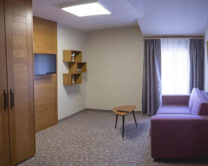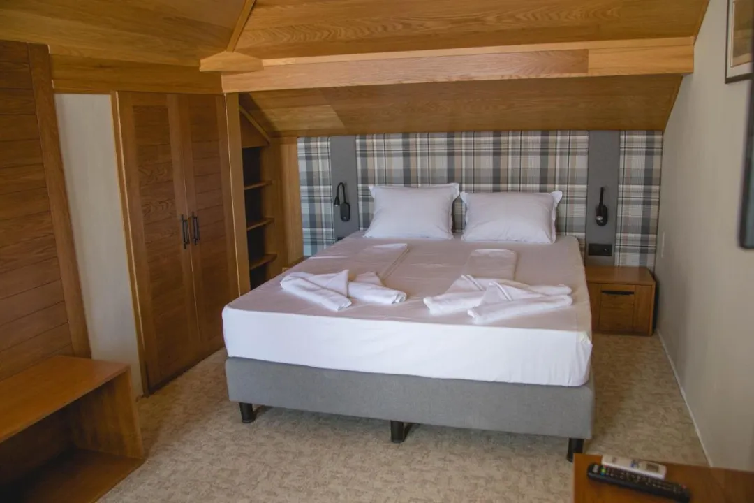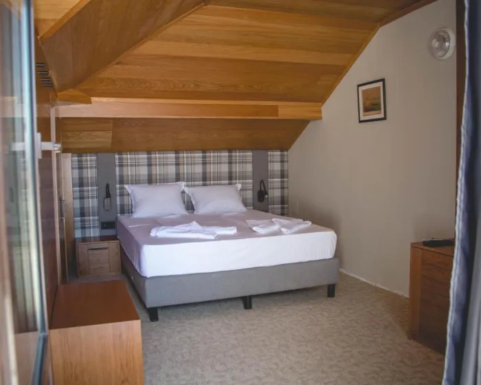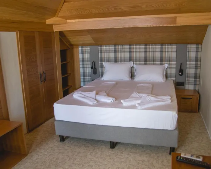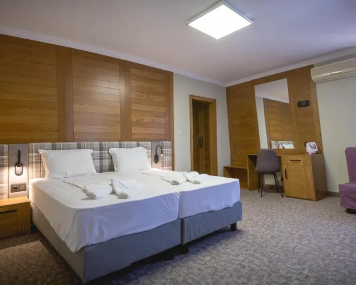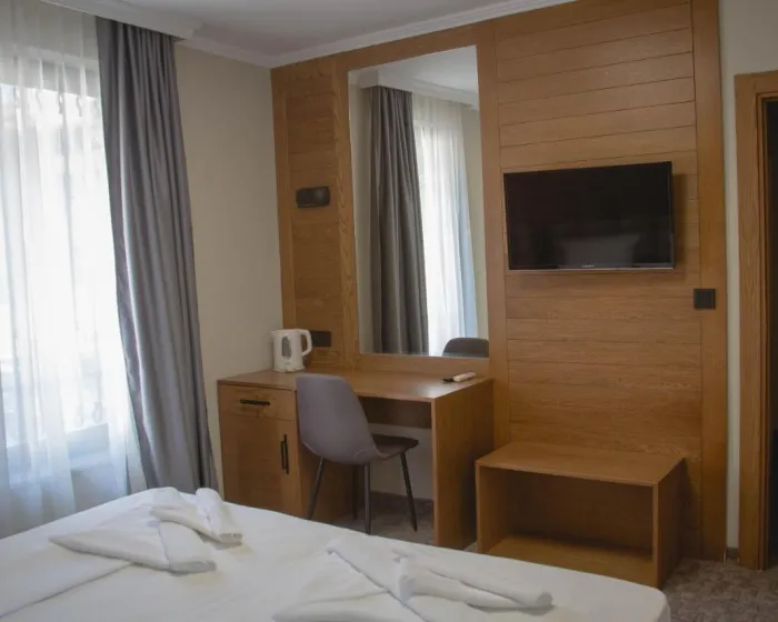 Svaki klimatizovani smeštaj ima flat-screen TV sa satelitskim kanalima i mini bar. Kupatilo ima tuš. Neke sobe imaju balkon.
