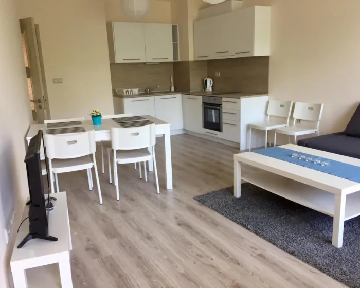 Apartman gostima pruža terasu, pogled na bazen, prostor za sedenje, satelitsku ravnu televiziju, potpuno opremljenu kuhinju sa rernom i tosterom, kao i privatno kupatilo sa tušem i fenom za kosu. Frižider, šporet i posuđe takođe su dostupni, kao i čajnik. U apartmanskom kompleksu, svaka jedinica ima posteljinu i peškire.