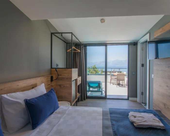 Klima uređaj i centralno grejanje osiguravaju udobne temperature u sobama. Većina jedinica ima pogled na more. Sobe imaju bračni krevet i sofu na razvlačenje. Dodatni kreveti mogu biti zatraženi. Takođe su dostupni sef i mini bar. Pegla za pantalone je obezbeđena radi gostijuove udobnosti. Telefonom, satelitskom televizijom, radiom i WiFi-jem (bez dodatnih troškova) su takođe obezbeđeni. Papuče su uključene. Fen za kosu i telefon su obezbeđeni u kupatilima, koje uključuju tuš kabinu i kadu. Hotel ima porodične sobe i sobe za nepušače.