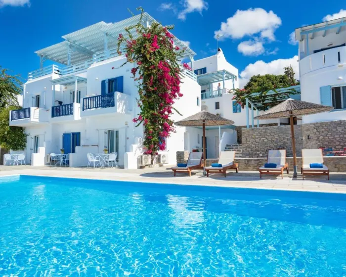 Pyrgaki Boutique Hotel Paros nudi pogled na luku Parikia i nalazi se na otprilike 600 metara udaljenosti od plaže Livadia. Veliki grad Parikia je udaljen oko 1500 metara od ovog hotela, a ostrvski aerodrom je udaljen otprilike 9 kilometara.