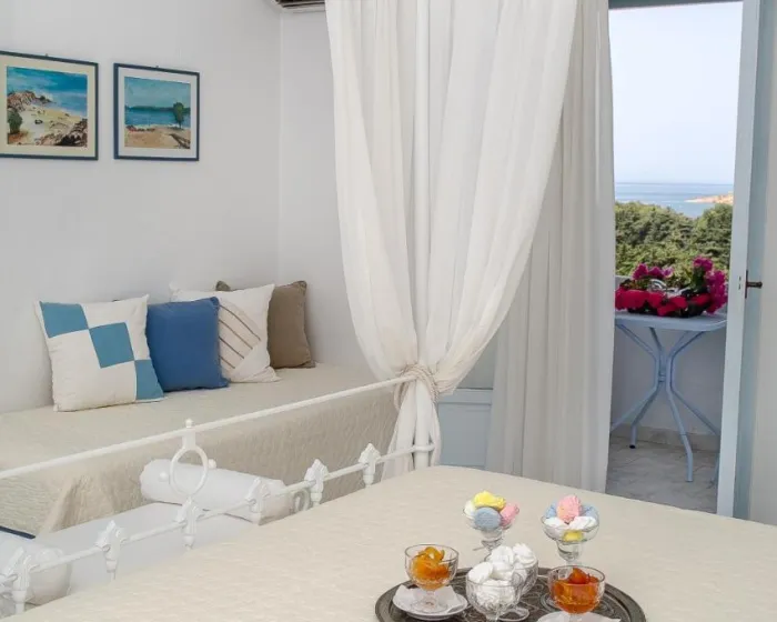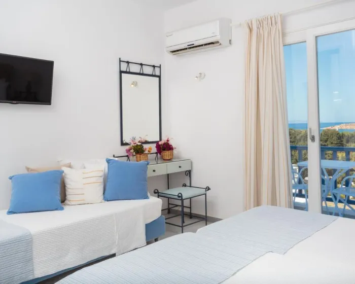 Sobe su opremljene klima uređajem i individualno podešavanjim grejanja. U većini jedinica, gosti mogu uživati u pogledu na more sa balkona ili terase. Sobe imaju bračni krevet ili krevet king size. Takođe su dostupni sef i radni sto. Dodatne pogodnosti uključuju frižider i mini frižider. Isto tako, tu je set za peglanje i sušilica za veš. Telefon, televizor sa satelitskim/kablovskim kanalima, radio i WiFi (bez dodatne naplate) osiguravaju optimalnu udobnost. Kupatila su opremljena tušem i kadom, kao i fenom za kosu. Kao posebna karakteristika, kupatila su takođe opremljena kozmetičkim proizvodima i izborom peškira. Hotel ima porodične sobe i sobe za nepušače.