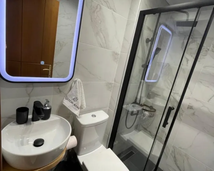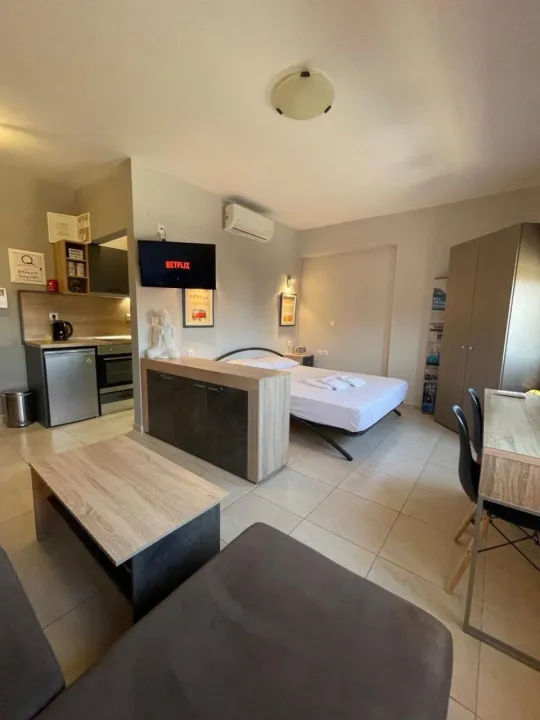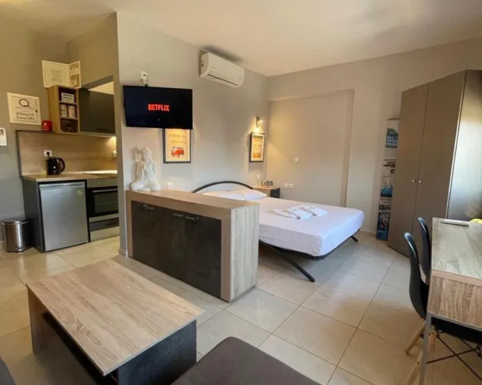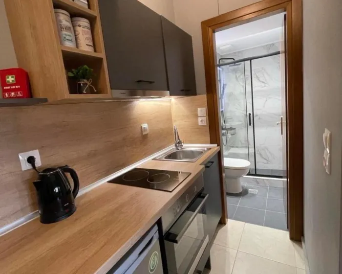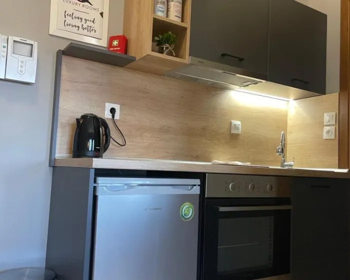 Klimatizovani apartman se sastoji od 1 spavaće sobe, dnevnog boravka, potpuno opremljene kuhinje sa rernom i aparatom za kafu, i 1 kupatila sa tušem i fenom za kosu. Peškiri i posteljina su dostupni u apartmanu. Ovaj apartman je pogodan za alergične osobe i zabranjeno je pušenje.