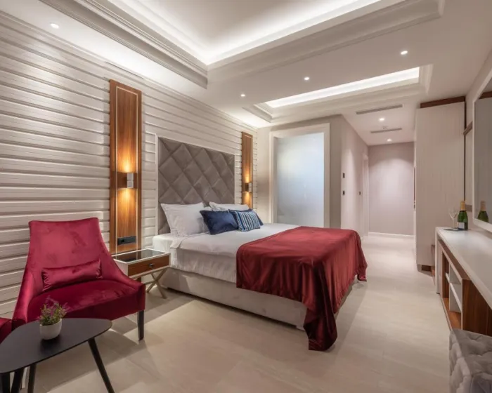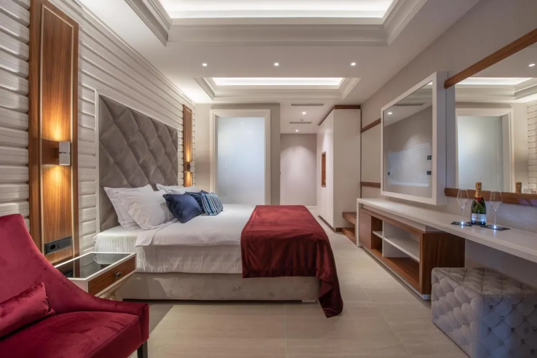 Centralno grejanje osigurava da sobe održavaju prijatne temperature. Većina jedinica ima pogled na more. U sobama se nalazi bračni krevet i sofa na razvlačenje. Dodatni kreveti mogu biti zatraženi. Ostale karakteristike uključuju telefon i WiFi (bez dodatne naplate). Hotel ima porodične sobe i sobe za nepušače.