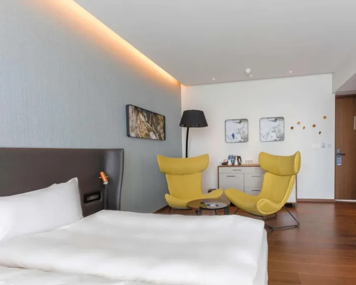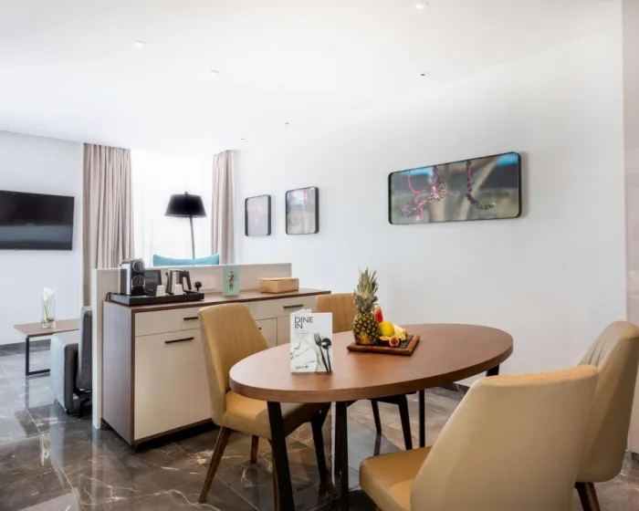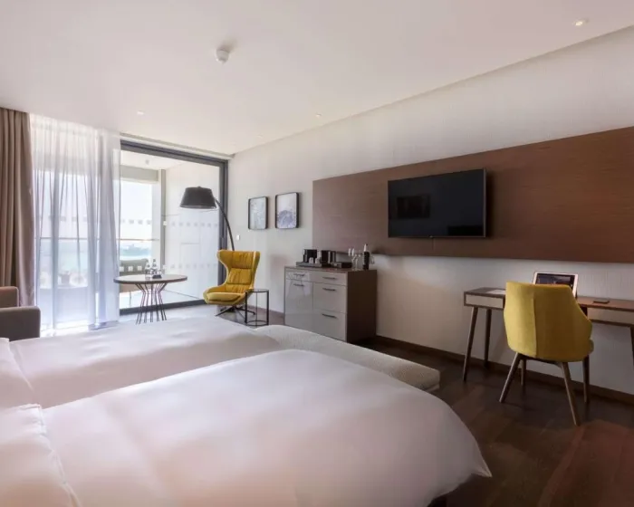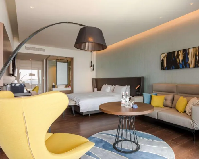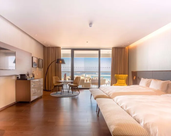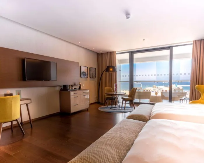 Sobe su opremljene klima uređajem i centralnim grejanjem. U većini jedinica, gosti mogu uživati u pogledu na more sa balkona ili terase. Sobe imaju bračni krevet, krevet king size ili krevet queen size. Dodatni kreveti se mogu zatražiti. Sef, minibar i radni sto su takođe dostupni. Gosti će pronaći i postaju za čaj/kafu među standardnim karakteristikama. Takođe postoji i set za peglanje i presa za pantalone. Telefoni, televizori sa satelitskim/ kablovskim kanalima, radio, preklopnik utičnica, alarmni časovnik i WiFi (bez dodatne naknade) su takođe obezbeđeni. Gosti će pronaći papuče u svojim sobama. Kupatila su opremljena tušem i uključuju fen za kosu. Kozmetički proizvodi i izbor peškira pružaju dodatnu udobnost u kupatilima. Posebne sobe prilagođene za osobe sa invaliditetom sa prilagođenim kupatilima za osobe sa invaliditetom takođe su dostupne. Hotel ima porodične sobe i sobe za nepušače.