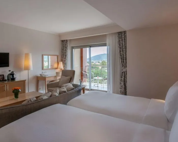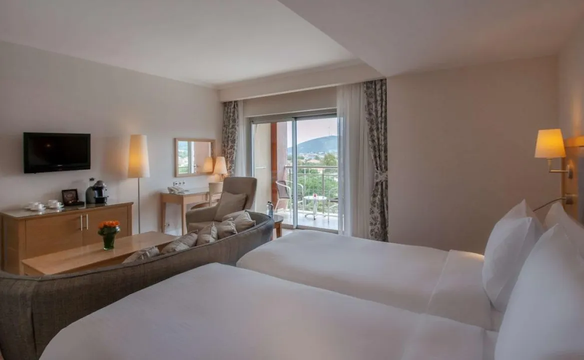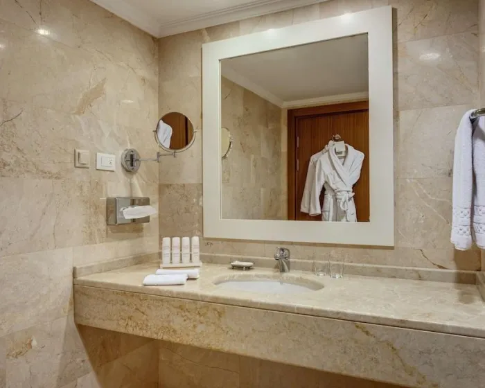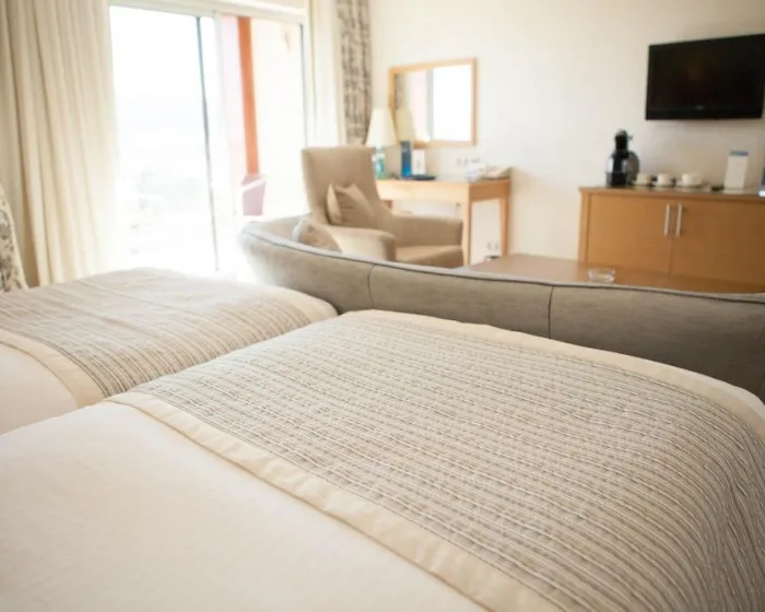 Sobe su opremljene klima uređajem, centralnim grejanjem i ventilatorom. U većini jedinica, gosti mogu uživati u pogledu na more sa balkona ili terase. Sve sobe su sa tepihom i uključuju bračni krevet ili krevet king size. Dodatni kreveti mogu biti zatraženi. Sef, mini bar i radni sto su takođe dostupni. Gosti će naći i stan za kafu/čaj među standardnim sadržajima. Pegla je obezbeđena radi gostove udobnosti. Direktni telefonski poziv, televizor sa satelitskim/kablovskim kanalima, alarmni sat i WiFi (bez dodatne naplate) su takođe obezbeđeni. Papuče su uključene. Fen za kosu i bade mantili su obezbeđeni u kupatilima, koji uključuju tuš i kadu. Kozmetički proizvodi i izbor peškira pružaju dodatnu udobnost u kupatilima. Gosti takođe mogu rezervisati sobe prijateljske za osobe sa invaliditetom sa kupatilima prilagođenim za invalidska kolica. Porodične sobe su dostupne za roditelje sa decom.