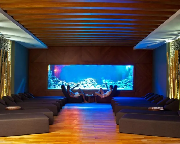 Prostor oko bazena, koji uključuje unutrašnje i spoljašnje bazene, savršeno je mesto za opuštanje nakon punog i aktivnog dana. Tu su i 2 bazena samo za decu. Gosti mogu koristiti ležaljke i suncobrane na terasi. Đakuzi u bazenskoj zoni obećava čisto opuštanje. Gosti koji žele da ostanu aktivni mogu učestvovati u vožnji bicikla/planinskom biciklizmu i streličarstvu. Gosti mogu učestvovati u različitim vodenim sportovima, uključujući ronjenje sa disalicom i vodene aerobik vežbe. Pored toga, ronjenje se nudi uz doplatu. Sportskim entuzijastima su ponuđene razne unutrašnje aktivnosti, uključujući teretanu, pikado, jogu i kalisteniku. Ponude wellness centra pružaju čisto opuštanje i uključuju saunu i hamam. Uz doplatu je dostupan i spa. Slobodno vreme uključuje zabavni program, klub za decu, dečji disko i živu muziku.