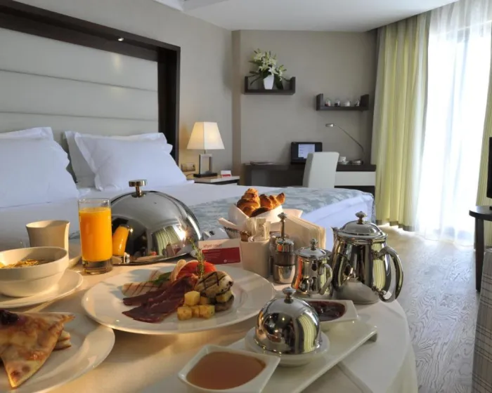 Raznovrsne opcije obroka su dostupne, uključujući bar i lobi bar. Gosti mogu uživati u obrocima u prijatnoj atmosferi 2 restorana (švedski sto i à la carte). Osvežavajuća pića u plažnom baru su savršen način da uživate u toplom vremenu. Opcije ishrane uključuju noćenje sa doručkom, polupansion i all-inclusive specijal. Svi gosti sa all-inclusive aranžmanom mogu uživati u posebnim dodacima poput užine, kao i izboru uvoznih pića i brendova hotela. Bogat i raznovrstan bife doručak (takođe za rane ptice i one koji kasno ustaju) pruža mnogo ukusnih razloga da se ustane i zablista. Za ručak i večeru, gosti se samoposlužuju na bifeu.