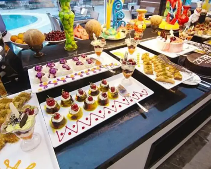 Glavni restoran, bar na bazenu, bar na plaži. Posebno se plaća prema pravilima hotela: usluge lekara, usluge pranja veša, telefon, fax, internet, rent a car. Wi Fi je besplatan u javnim prostorijama i sobama.Otvoreni bazen za odrasle, fitnes, stoni tenis, večernje animacije dva puta nedeljno. Posebno se plaća prema pravilima hotela: sportovi na vodi, sauna, masaža.