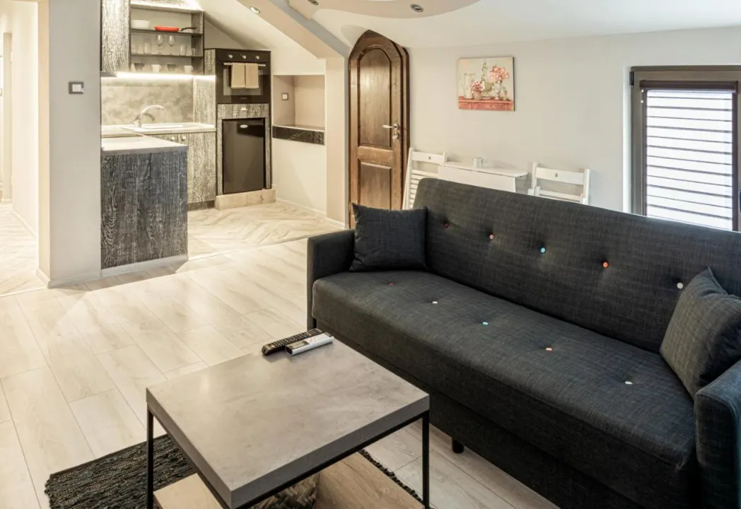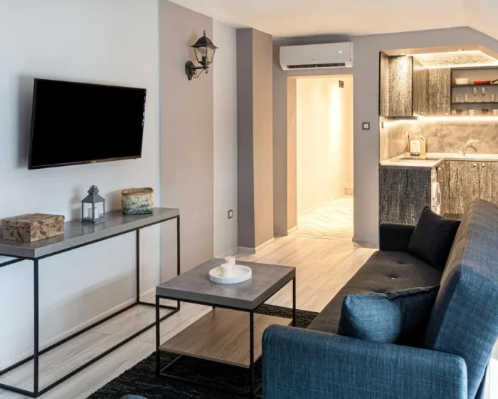 Prostrani apartman ima 2 spavaće sobe, 1 kupatilo, posteljinu, peškire, flat-screen TV sa satelitskim kanalima, trpezariju, potpuno opremljenu kuhinju i terasu sa pogledom na unutrašnje dvorište. Ovaj apartman takođe gostima pruža balkon koji je ujedno i spoljni trpezarijski prostor. Radi dodatne privatnosti, smeštaj ima privatni ulaz.