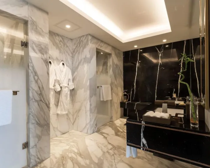 Sobe imaju dnevni boravak, kuhinju i kupatilo. Klima uređaj i centralno grijanje osiguravaju udobne temperature. U većini jedinica, gosti mogu uživati u pogledu na more sa balkona ili terase. U sobama se nalazi bračni krevet, krevet queen size ili krevet king size. Dostupne su odvojene spavaće sobe. Dodatni kreveti ili dječji krevetići mogu biti dostupni na zahtjev. Takođe postoji mini bar i sto ili, uz dodatnu naknadu, sef. Dodatne funkcije uključuju mini frižider i aparat za čaj/kafu. Takođe su prisutni pegla i presa za hlače. Telefon, ravnog ekrana televizor sa satelitskim/kablovskim kanalima, radio i WiFi (bez dodatne naplate) pružaju sve osnovne uslove za udoban odmor. Gosti mogu iskoristiti večernju uslugu čišćenja sobe. Sadržaji koje nude sobe uključuju papuče i dnevne novine. Kupatila su opremljena tušem i kadom. Fen za kosu, ogledalo za šminkanje i bade-mantili su dostupni za svakodnevnu upotrebu. Radi dodatnog komfora u kupatilima, gostima su ponuđeni kozmetički proizvodi. Gosti takođe mogu rezervisati sobe prilagođene osobama u kolicima sa pristupačnim kupatilima. Hotel ima porodične sobe i sobe za nepušače.