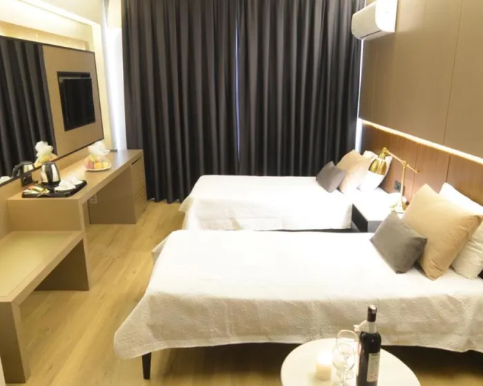 Sobe su opremljene klima uređajem i centralnim grejanjem. Sobe sadrže bračni krevet. Dodatni kreveti mogu biti zatraženi. Takođe su dostupni sef, minibar i radni sto. Gosti će takođe pronaći postaju za čaj/kafu među standardnim sadržajima. Telefon, satelitska televizija i WiFi (bez dodatne naplate) obezbeđuju optimalnu udobnost. Papuče su uključene. Fen za kosu i telefon su dostupni u kupatilima, koja su opremljena tuš kabinom i kadom. Kao posebna pogodnost, kupatila takođe imaju kozmetičke proizvode i izbor peškira. Hotel ima porodične sobe i sobe za nepušače.