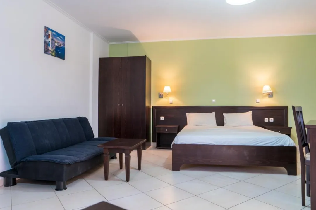 Sobe su opremljene klima uređajem i centralnim grejanjem. Gosti mogu uživati u pogledu na planinu sa balkona ili terase. U sobama se nalazi bračni krevet. Dodatni kreveti se mogu zatražiti. Dodatni sadržaji uključuju frižider i čajnu/kafu stanicu. Pegla je dostupna radi praktičnosti gostiju. Telefon, TV i WiFi (bez dodatne naplate) takođe su obezbeđeni. Kupatila su opremljena tušem i kadom, kao i fenom za kosu. Hotel ima sobe za nepušače.