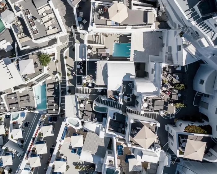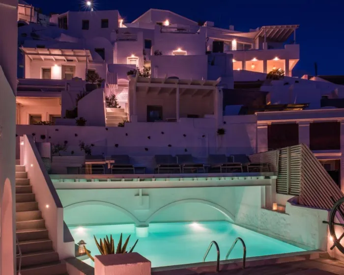 Ovaj mali hotel smešten je na stenama 200 metara iznad kalderonske kotline, u čuvenom selu Imerovigli. Nalazi se samo 10 minuta od glavnog grada ostrva, grada Fira.